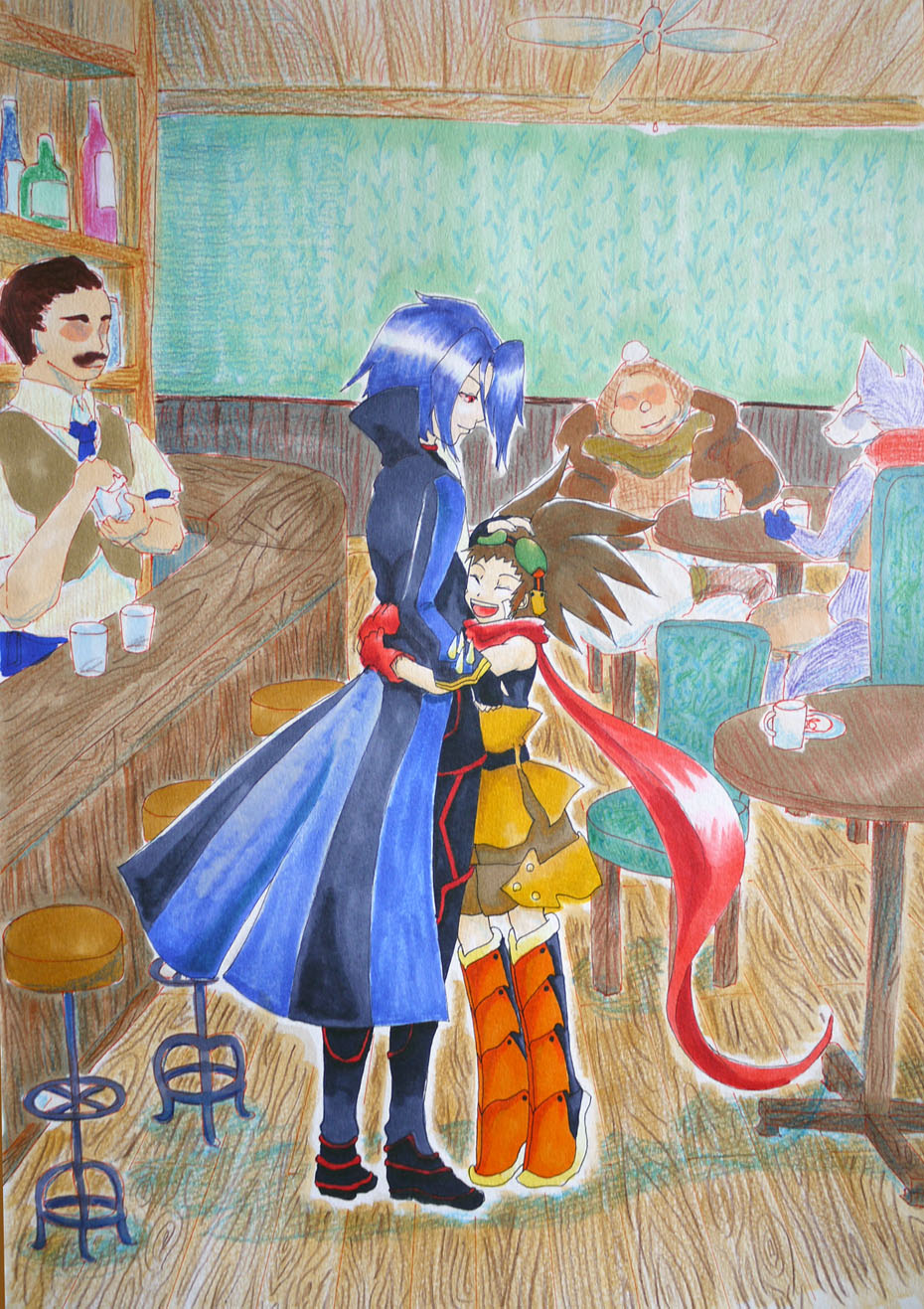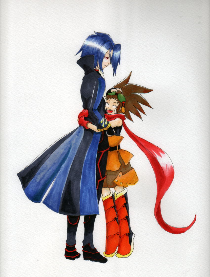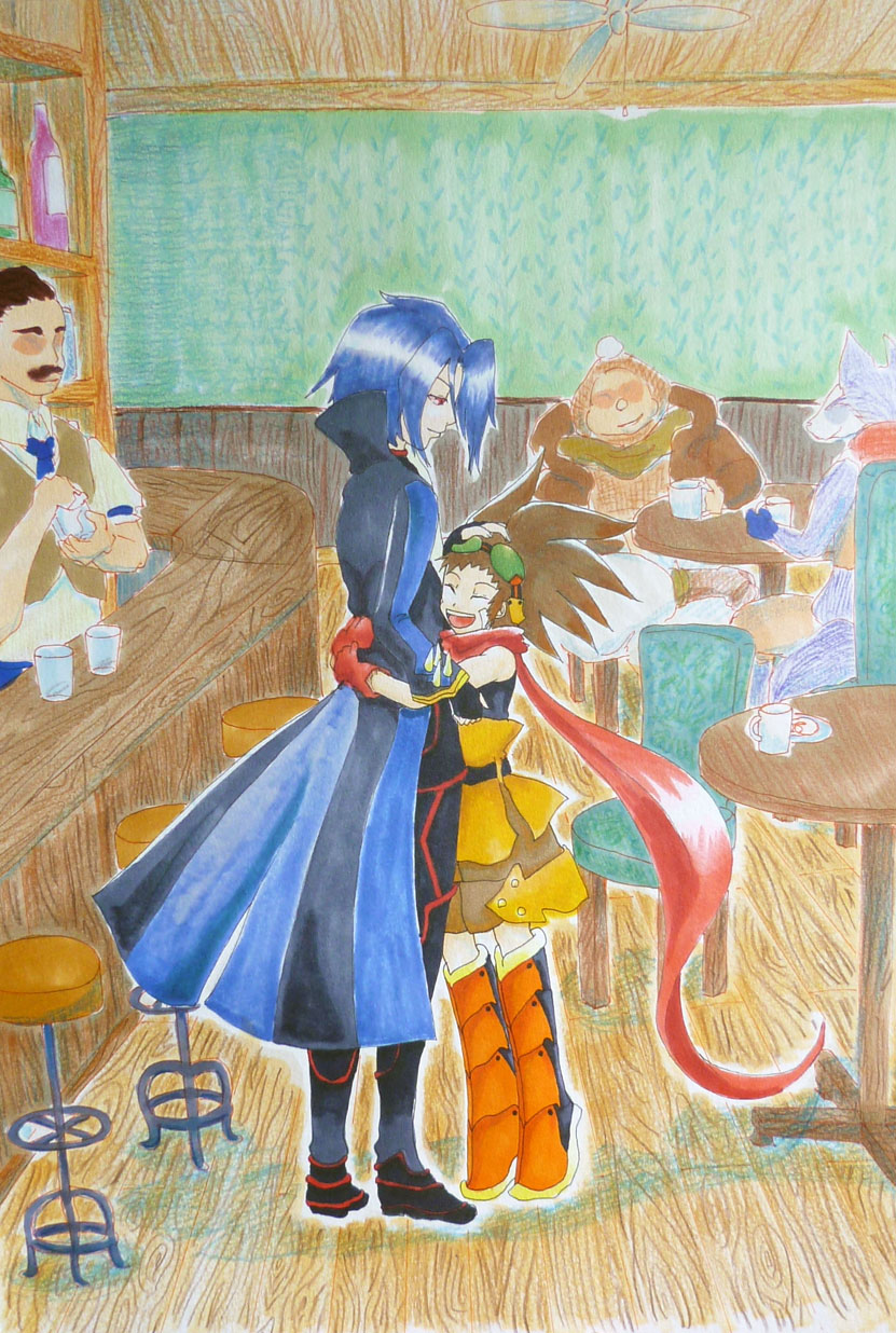 某方が「DSサバジャンDSサバジャン」と呟いていらして、「DSサバジャン?何それ美味しいの?サバタがサルタナの性格だったら?面倒見の良いサバタさん?何それ美味しい!」の思考回路を経て頭なでなで凸凹ハンターズになりました。本編だったら絶対にありえない光景。