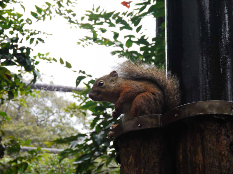 リスは噛むので、体に乗り移られたら垂直にジャンプして払い落としてください、リスは運動神経が良いのでその程度で怪我はしません、だそうです。リスよ……私は美味しくないよ……