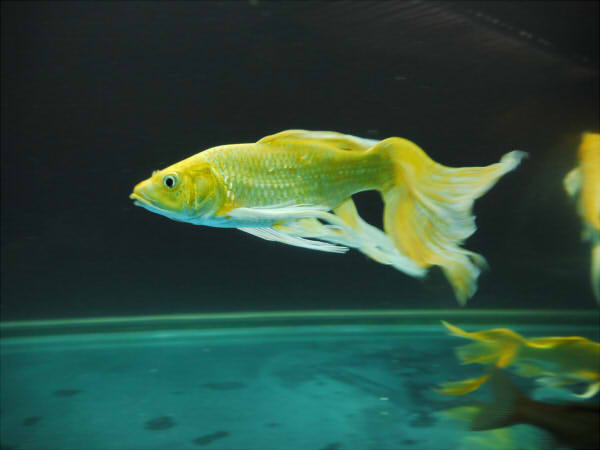 品種改良でうまれたひらひらした鯉。となりに鯉のえさやりができるところもありました。一角がダイエット中の鯉でした。